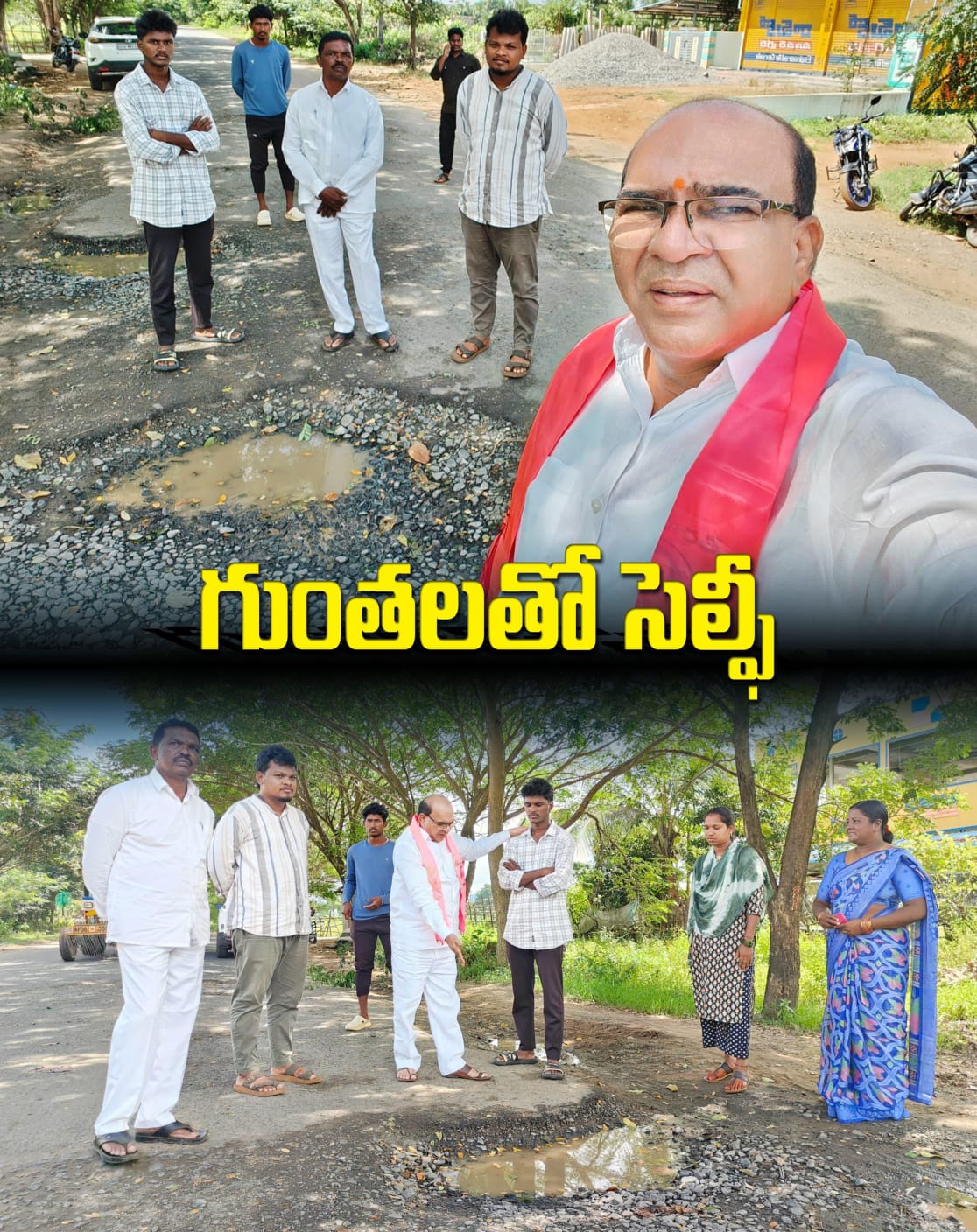 భద్రాద్రి కొత్తగూడెం జిల్లా BRS పార్టీ అధ్యక్షులు రేగ కాంతారావు ఇచ్చిన(గుంతలతో సెల్ఫీ) పిలుపు మేరకు అశ్వారావుపేట మాజీ MLA మెచ్చా నాగేశ్వరరావు గుంతలతో సెల్ఫీ దిగి కాంగ్రెస్ ప్రభుత్వంపై మండిపడ్డారు.