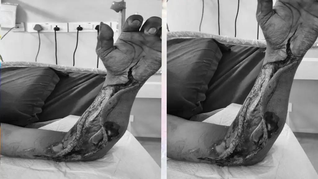 అక్కడి నుంచి యశోదా ఆస్పత్రికి తరలించారు. చేతికి ఇన్ ఫెక్షన్ తొలగించడానికి రూ. 35 లక్షలు ఖర్చు చేశారు. చికిత్స కోసం ఉన్న ఇల్లును అమ్మారని బాధితుడు బోరున విలపిస్తున్నాడు.