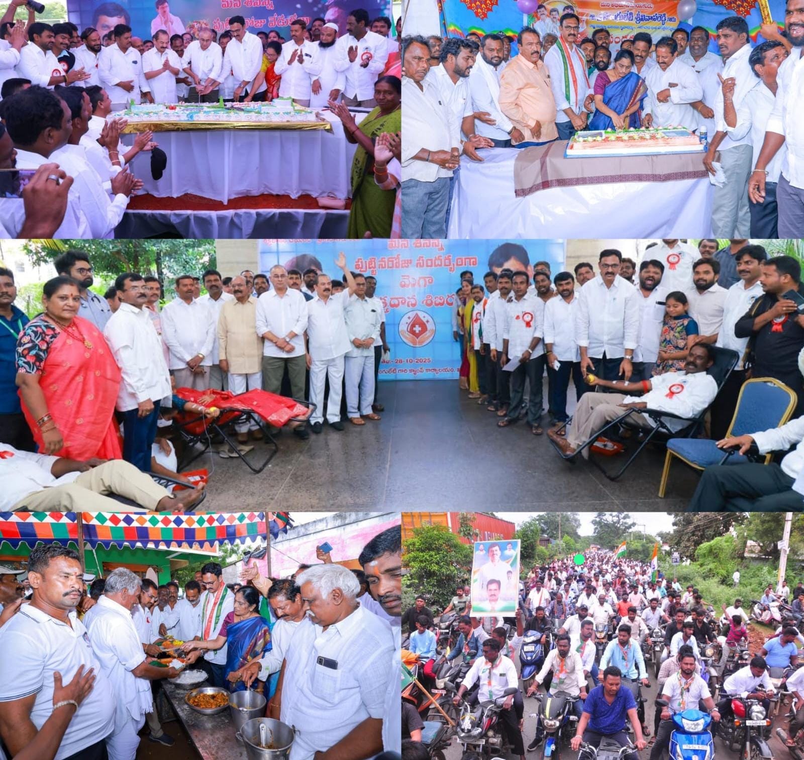 ఖమ్మం క్యాంపు కార్యాలయంలో క్యాంపు కార్యాలయ ఇన్ చార్జ్ తుంబూరు దయాకర్ రెడ్డి ఆధ్వర్యంలో కేక్ కటింగ్, రక్తదాన శిబిరాలను నిర్వహించారు.