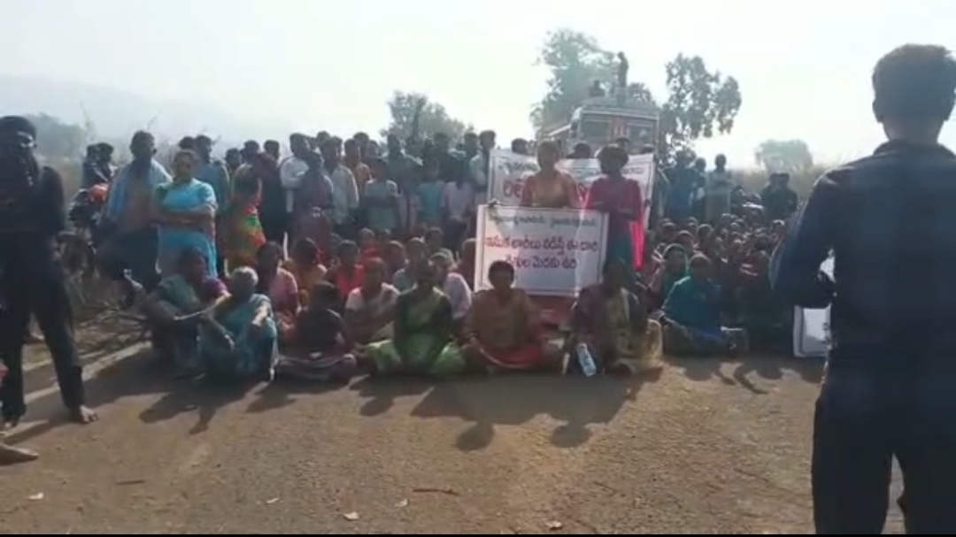 ములుగు జిల్లా వెంకటాపురం మండలం అబ్బాయిగూడెంలోని ఇసుక మాఫియాకు వ్యతిరేకంగా రహదారిపై బైఠాయించి నిరసనకు దిగిన గిరిజనులు, గ్రామస్తులు