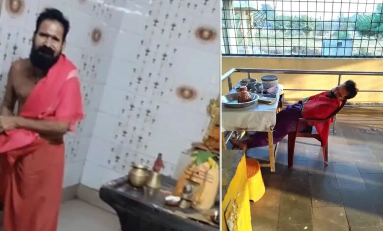 మద్యం మత్తులో అర్చకుడి పూజలు..