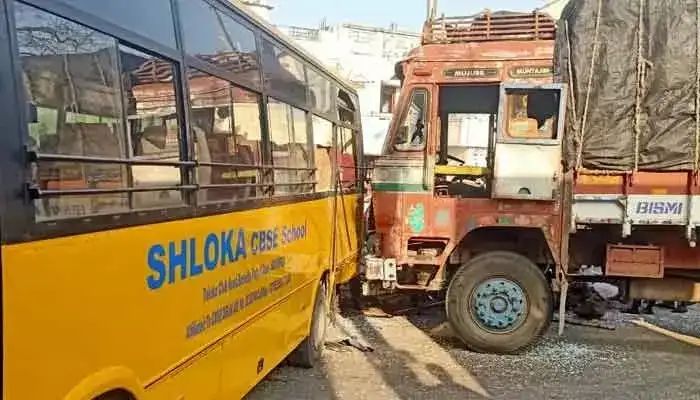 ప్రమాద సమయంలో బస్సులో 20 మంది స్కూల్ పిల్లలు ఉన్నారు. పిల్లలకు ఎలాంటి ప్రమాదం చోటు చేసుకోకపోవడంతో అంతా ఊపిరి పీల్చుకున్నారు.