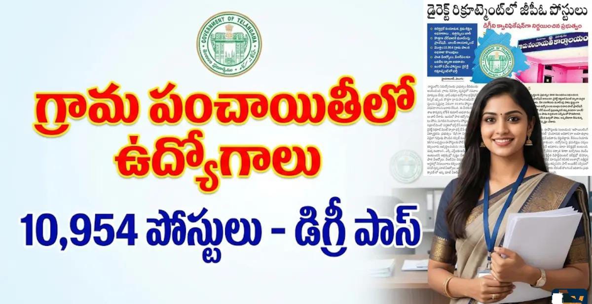 నిరుద్యోగులకు తెలంగాణ ప్రభుత్వం గుడ్ న్యూస్ చెప్పింది. భారీ సంఖ్యలో ‘గ్రామ పాలనా అధికారుల’ (Grama Palana Officers – GPO) పోస్టులను భర్తీ చేయాలని నిర్ణయించింది. సుమారు 10,954 పోస్టులను భర్తీ చేయడానికి అధికారులు ప్రణాళిక రూపొందించారు. పూర్తి వివరాలతో అధికారిక నోటిఫికేషన్ త్వరలో విడుదలయ్యే అవకాశం ఉంది.