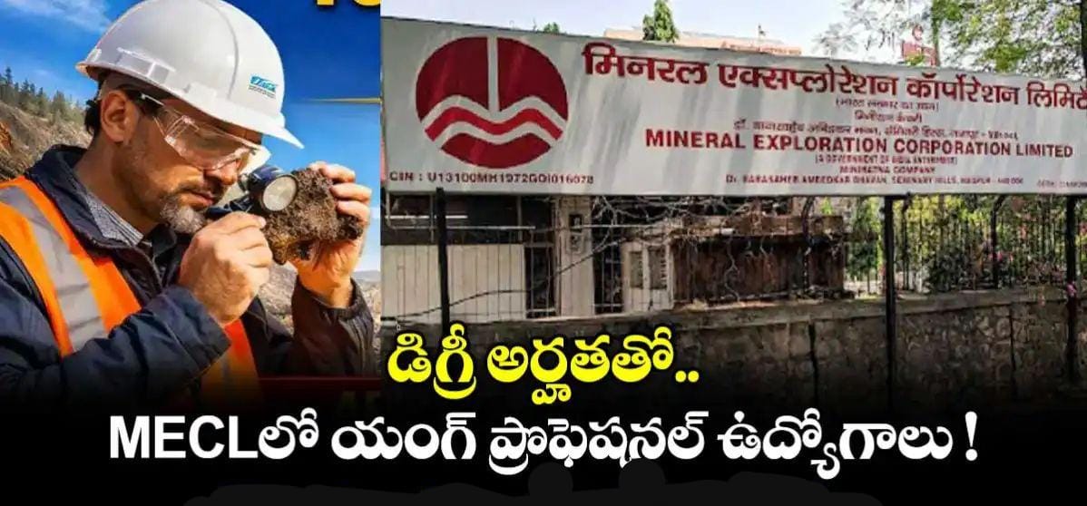 Web desc : మినరల్ ఎక్స్ప్లోరేషన్ & కన్సల్టెన్సీ లిమిటెడ్ (ఎంఈసీఎల్) యంగ్ ప్రొఫెషనల్ ఖాళీల భర్తీకి నోటిఫికేషన్ విడుదల చేసింది. ఎం.ఎస్సీ./ ఎంటెక్/ ఎంఈ పూర్తిచేసిన అభ్యర్థులు ఆన్లైన్లో అప్లై చేసుకోవచ్చు. ఆన్లైన్లో దరఖాస్తు చేసుకోవడానికి చివరి తేదీ మార్చి 09.