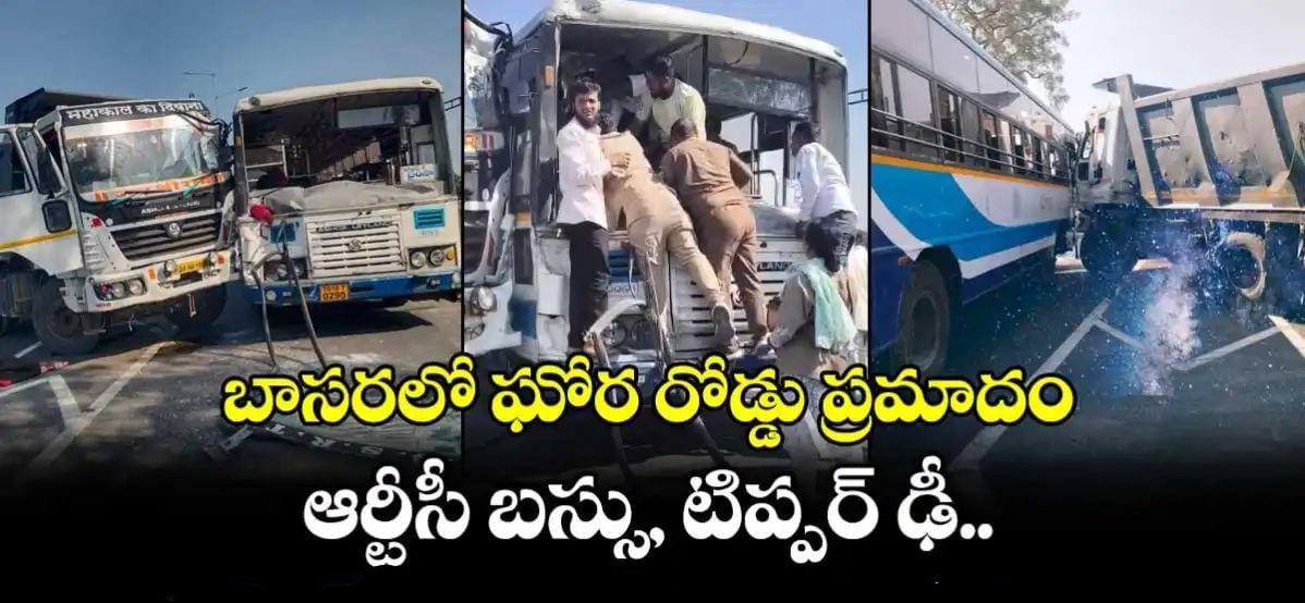 బాసరలో ఘోర రోడ్డు ప్రమాదం… ఆర్టీసీ బస్సు, టిప్పర్ ఢీ..
