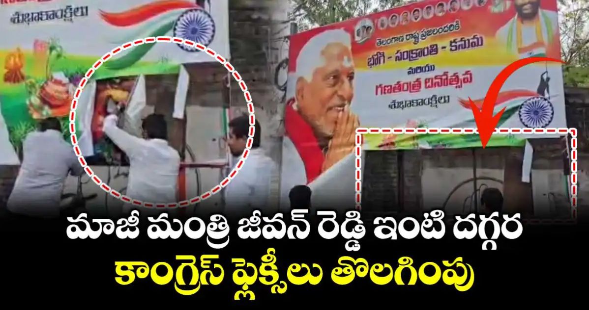 మాజీ మంత్రి జీవన్ రెడ్డి ఇంటి దగ్గర కాంగ్రెస్ ఫ్లెక్సీలు తొలగింపు