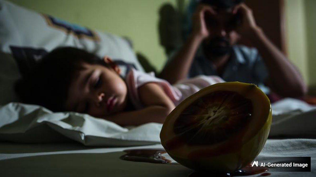 చిన్నారి పాలిట మరణశాసనం రాసిన తండ్రి. రెండేళ్ల అమాయకపు బిడ్డ ఎంతో ప్రేమతో తన తండ్రి దగ్గరకు వచ్చి తండ్రి ఇచ్చిన పండులో విషం ఉందని తెలియక దానిని ఇష్టంగా తినేసింది.