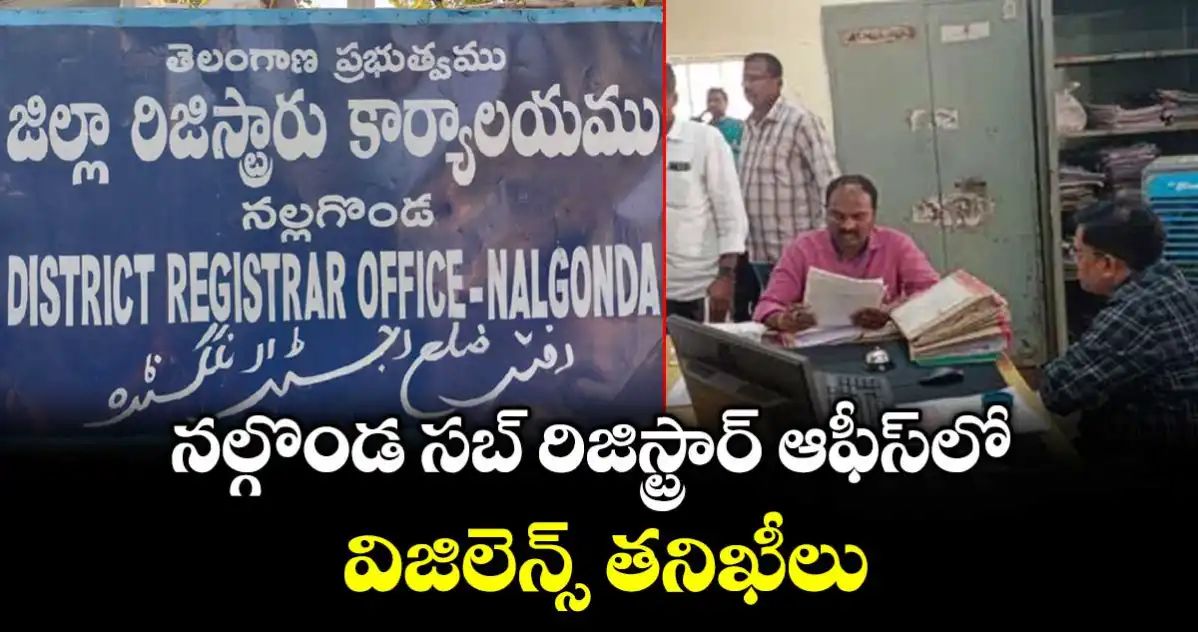 నల్గొండ సబ్‌ రిజిస్ట్రార్‌ ఆఫీస్‌లో బుధవారం విజిలెన్స్ ఆఫీసర్లు ఆకస్మిక తనిఖీలు నిర్వహించారు.విజిలెన్స్ సీఐ దశరథ మనోజ్‌కుమార్‌ ఆధ్వర్యంలో రిజిస్ట్రేషన్‌ ఆఫీస్‌కు చేరుకున్న అధికారులు పలు డాక్యుమెంట్లు, రికార్డులు, అటెండెన్స్‌ రిజిస్టర్‌ను పరిశీలించారు.