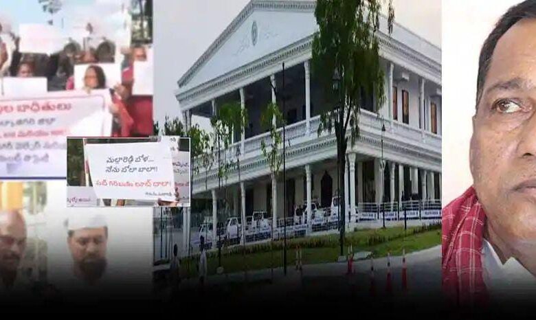 మల్లారెడ్డి మా భూములు కబ్జా చేసిండు.. బాధితుల ఆందోళన