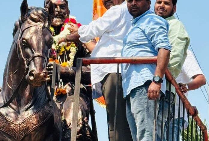 చత్రపతి శివాజీ జయంతి సందర్భంగా విగ్రహానికి పూలమాల వేసిన చందాయి బుడ్డ బాగ్యరాజు