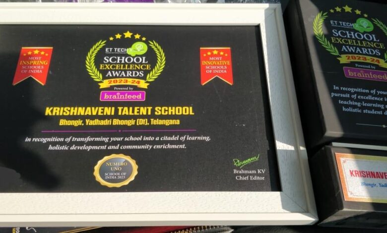 కృష్ణవేణి టాలెంట్ స్కూల్, భువనగిరి కి బెస్ట్ స్కూల్ అవార్డు….
