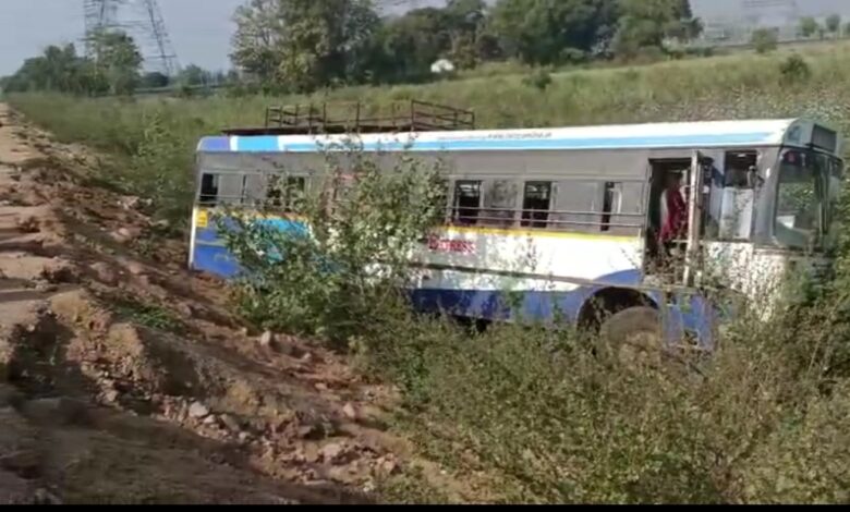పొలాల్లోకి దూసుకెళ్లిన ఆర్టీసీ బస్సు
